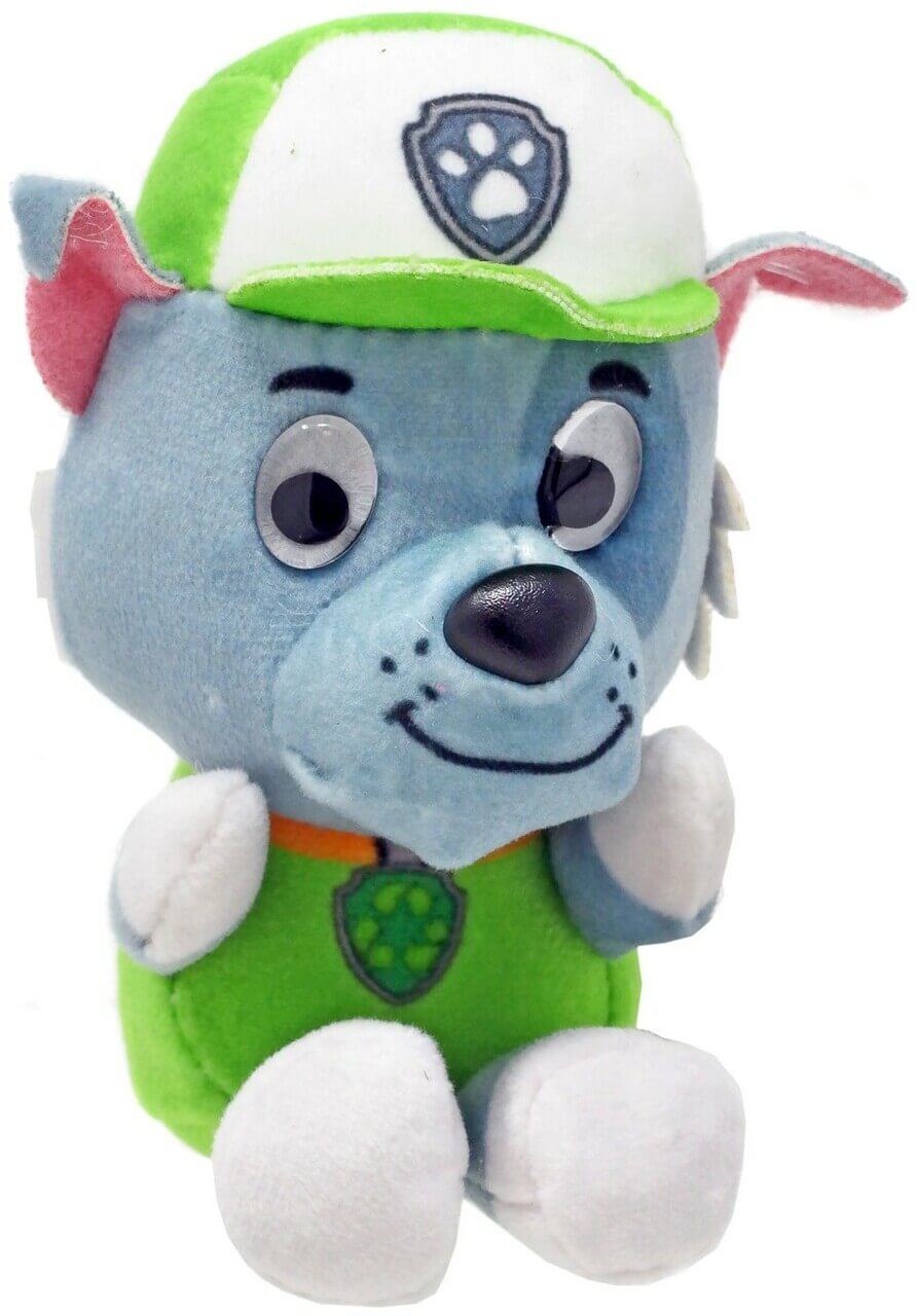 The plucky pups of PAW Patrol are ready to save the day! Rocky has a tool for that! This 3" soft plush is dressed and suited up and to go.