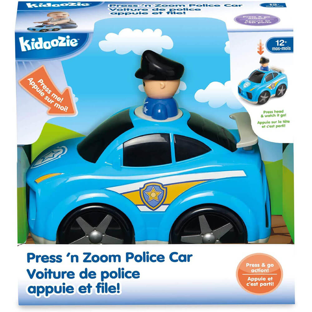 The Kidoozie Press 'n Zoom Police Car features lots of little enticing details. The wheels spin and the spoiler jumps as it rolls. Plus it comes has cool police decals on the side with safe rounded edges and a little peek-a-boo officer. You want to give your child good role models from the start like doctors, firefighters, and police officers. Now with the Press 'n Zoom Police Car, they have a little hero of their own to help. They'll have hours of fun getting their pal to the scene of the emergency. The Press 'n Zoom vehicles from Kidoozie move without any power source. All you have to do is press the hero's head and watch the vehicle race across the floor. No batteries required! It's the perfect toy that never stops rolling. Kidoozie toys are engaging, educational and FUN. Our broad range of high-quality toys have won numerous awards and are safe and well designed. Innovative toys encourage movement, problem-solving and pretend play through various themes. Stimulate the imagination and enable learning through play.: Package contains (1) Kidoozie Press 'n Zoom Police Car with press and go action. Recommended for children ages 12 months and older.