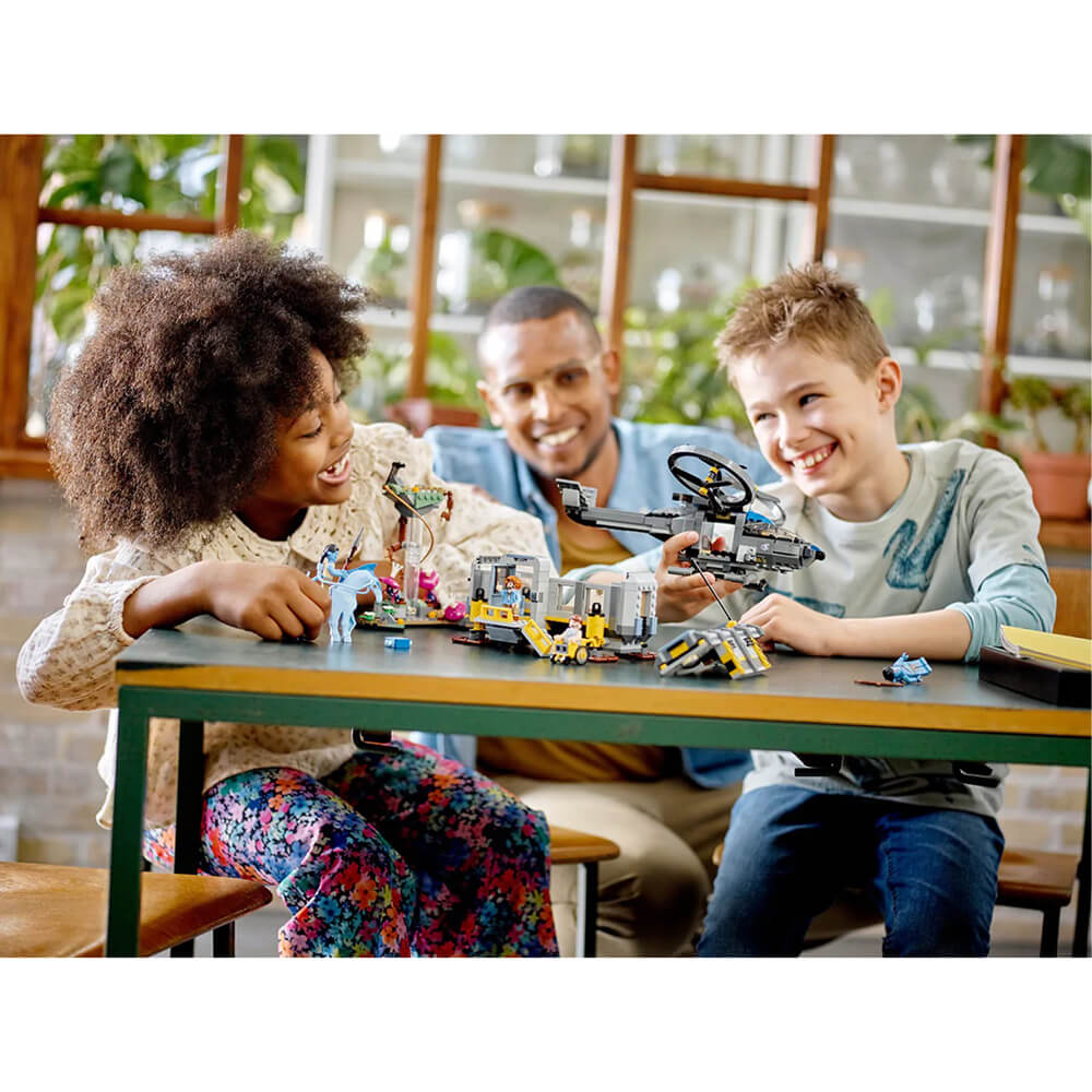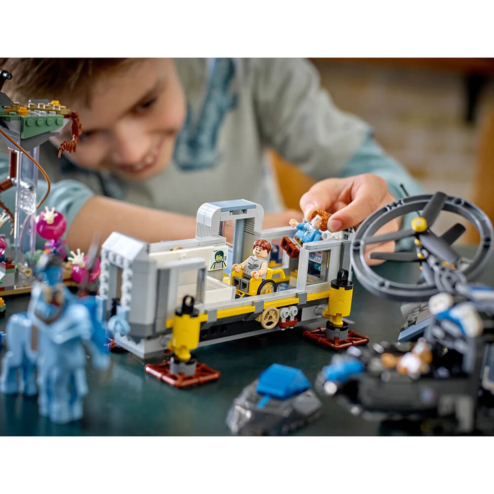 Inspire a child with a LEGO® Avatar set including a helicopter, Site 26 lab, 5 minifigures, Direhorse figure and a build with glow-in-the-dark parts.