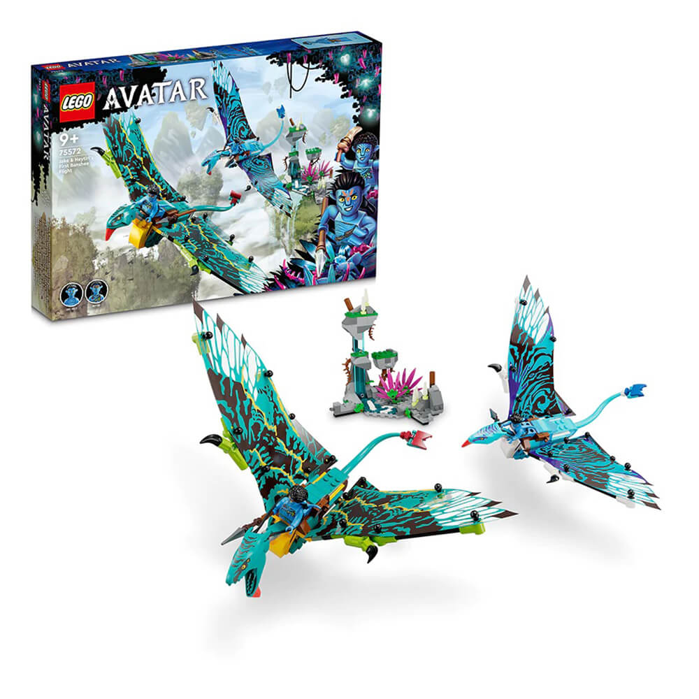 Do you know an Avatar fan or child aged 9 and up who’s into nature and action? This LEGO® Avatar Jake & Neytiri’s First Banshee Flight (75572) building toy set will hit the spot. The playset includes Jake Sully and Neytiri minifigures, 2 posable Banshee (Ikran) figures, plus a section of the Hallelujah Mountains with glow-in-the-dark pieces. Imaginative action play for one and all Encourage a child or movie fan’s creativity with a set that reflects Pandora’s environment as kids and familiesplay out favorite scenes or make new stories. Connect different sets (sold separately), to extend the play possibilities and build your own version of Pandora. Powerful Na’vi moments Filled with iconic characters and well-known locations, LEGO Avatar sets give kids a fun play experience and exciting story options. The models also look great displayed on a shelf, with a detailed build made for posing a creature, so older fans can enjoy a joyful focus as they build the colorful universe.