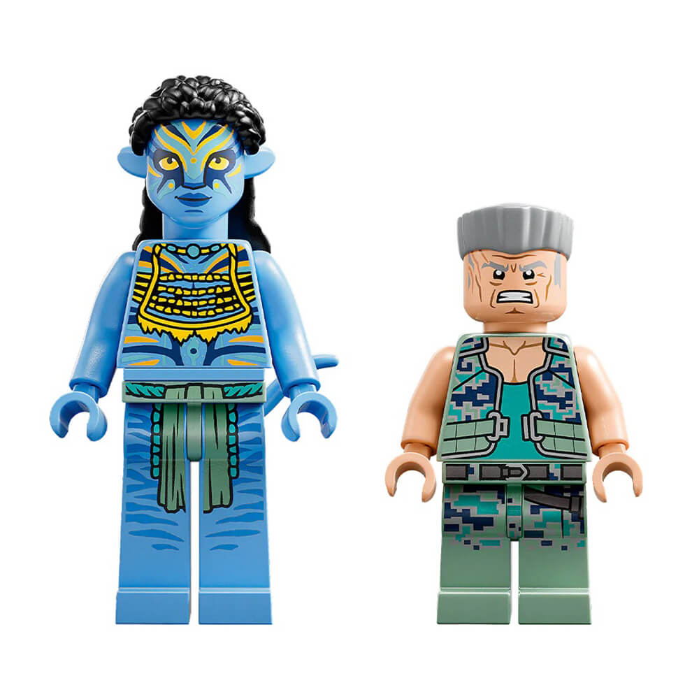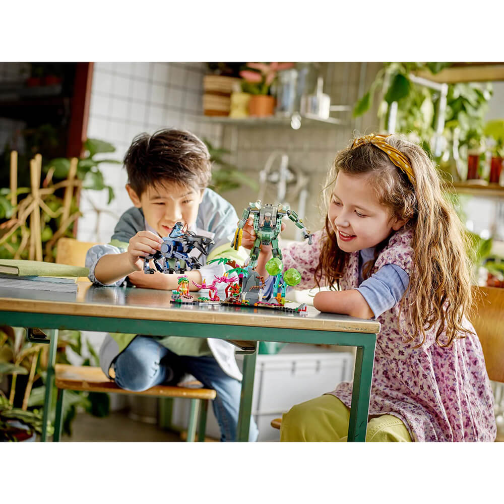 Leap on your Thanator and connect with it using your Na’vi kuru, then join Neytiri in her battle against Colonel Quaritch! Dive into action with this awesome LEGO® Avatar set and replay their epic final confrontation. Create the rainforest environment with glow-in-the-dark pieces. Place the Colonel in his AMP suit, mount Neytiri on her Thanator and get started. Who will prevail? That’s up to you!