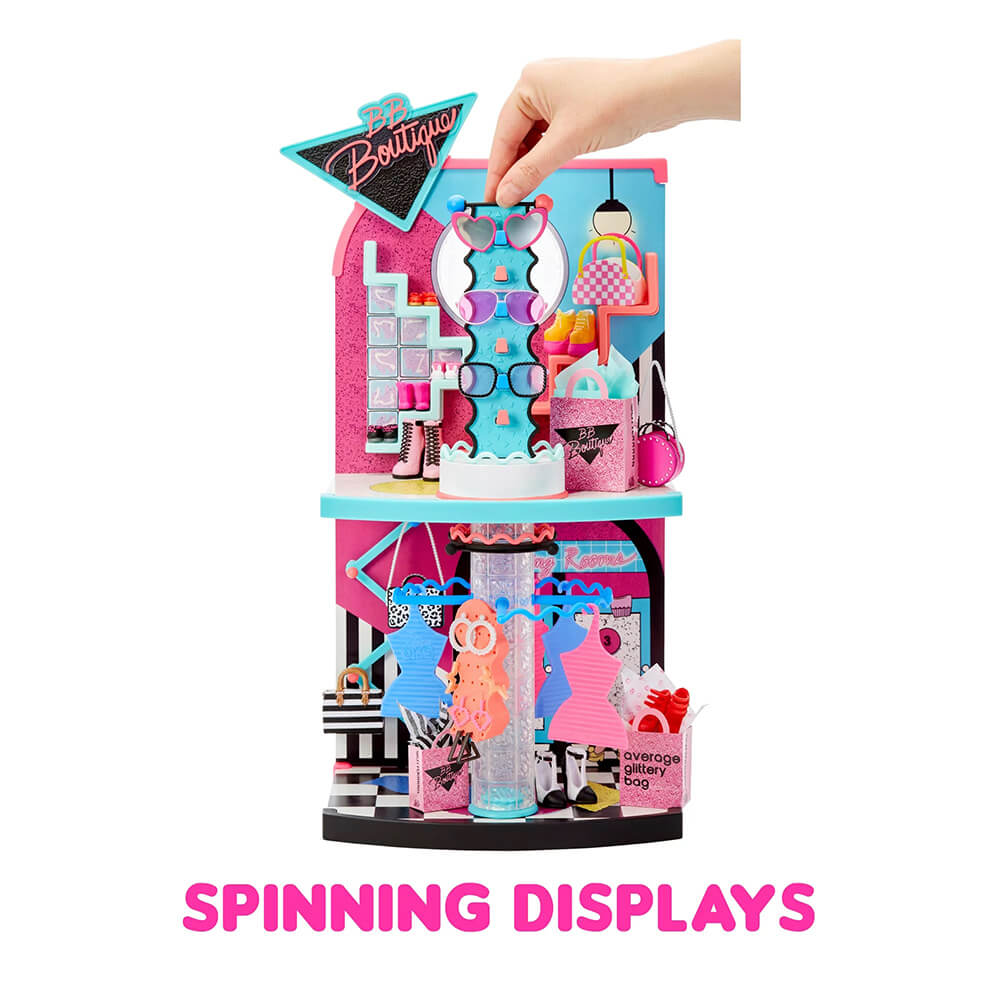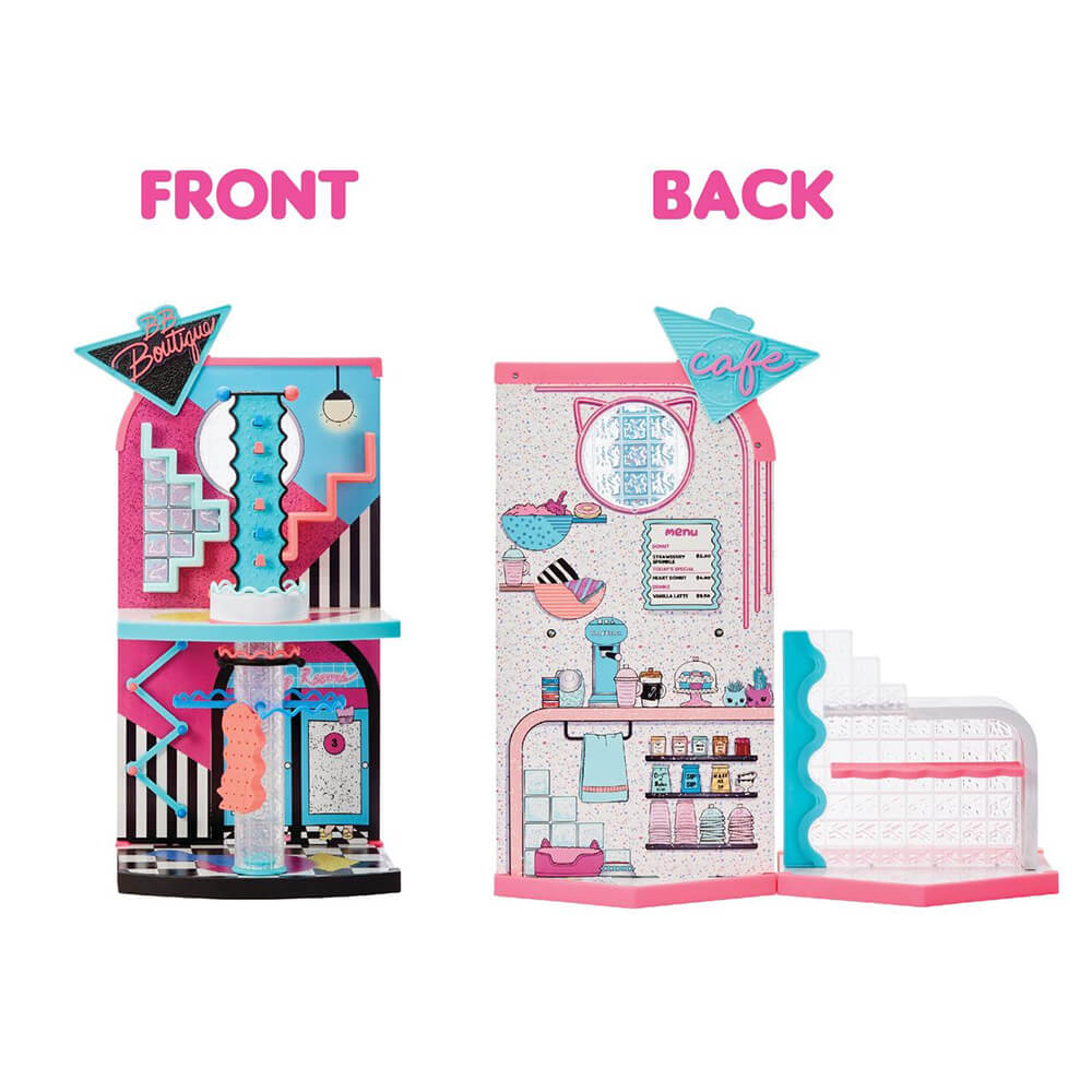 The two-story B.B. Boutique features clothing rack displays that really spin to show off all the included fierce fashion swag and accessories for these diva dolls, while the Café hangout comes with a two-sided counter ready for ordering and serving up a variety of mini sweets, including delicious doughnuts and drinks. At the LOL Surprise OMG Mall of Surprises, you can shop and play with all LOL Surprise Tweens, OMG, and collectible dolls, including Neonlicious, royal Bee, Skate Boss, Melrose and more!