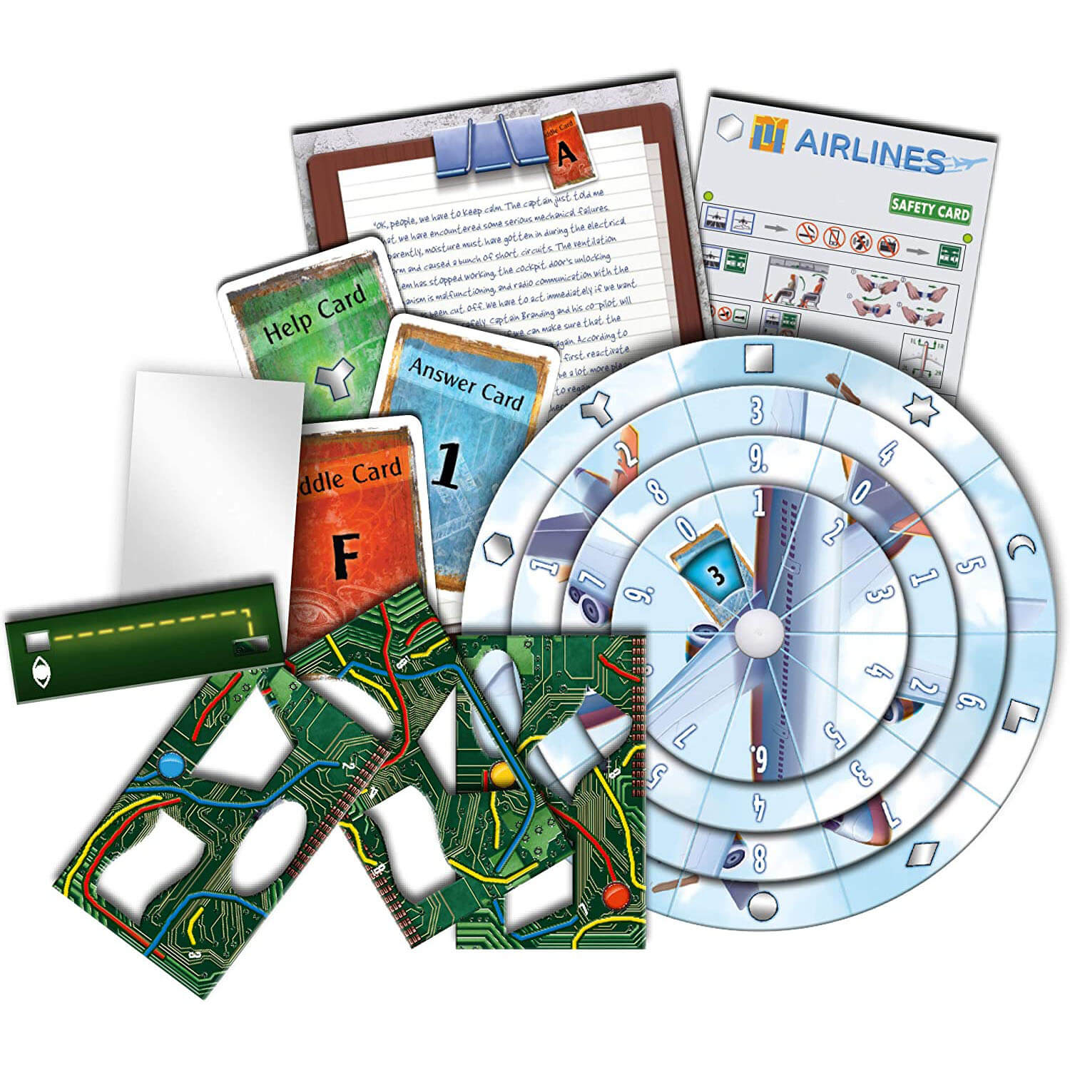 You are crew members on a passenger plane bound for Barbados. You have flown this route countless times already and have experienced everything possible (and impossible) on these flights: technical malfunctions, turbulence … even tour groups who are flying to Hamburg, Berlin, London, or Amsterdam in order to visit so-called “escape rooms” there ...But what’s waiting for you today is going to leave everything else in the dust. The weather service already announced that things might get “a little rough,” but now you find yourselves in the kind of electrical storm that can easily throw even an experienced crew into a state of panic. The clouds are almost black, flashes of lightning rip through the dark sky, and rain pounds the engines. Suddenly, an alarm light comes on … and another … and you have a queasy feeling that the rest of the flight might become the greatest adventure that you have ever experienced.Can you solve the riddles, repair the airplane, and land safely? Difficulty: 2 of 5