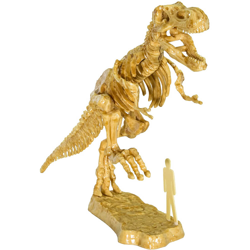 Excavate a T. rex skeleton model from inside a 3D T. rex fossil replica. The T. rex lies before you as a 3D fossil, almost as if it had died just moments ago. Like a paleontologist, you must dig through the soft layers of plaster to expose the fossilized bones. Assemble the skeleton model, and the prehistoric giant rises again. The kit includes 12 skeleton pieces buried in a plaster block, excavation tools, and a descriptive manual.