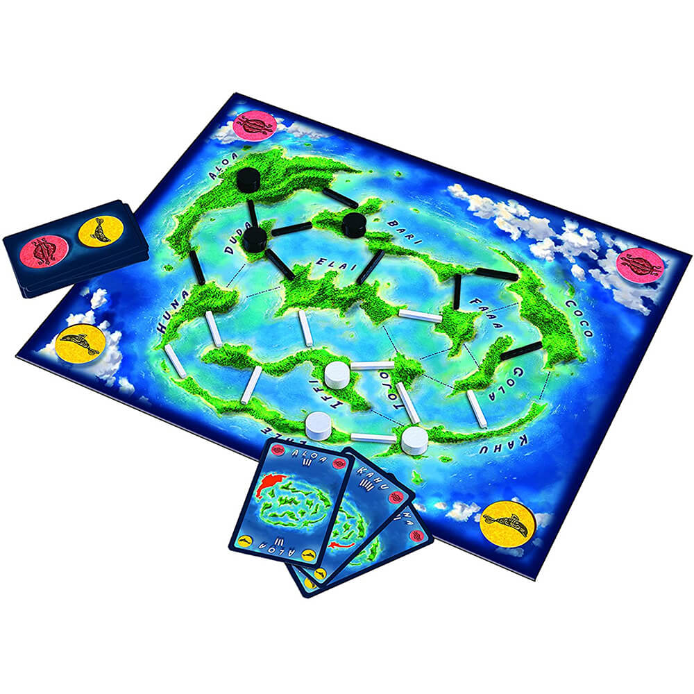 Who will rule the South Seas? Two Kahuna — ancient sorcerers of the Pacific — compete for dominance on an archipelago consisting of twelve small islands. Using their magic and wisdom, they struggle for control of the islands. They anxiously await the cards handed to them by fate. But when the time is right, they move to capture one, two, or even more islands, trying to gain the upper hand. At the mercy of the magical powers of the South Seas, they quickly realize that even the best magic is no good without strategy.
