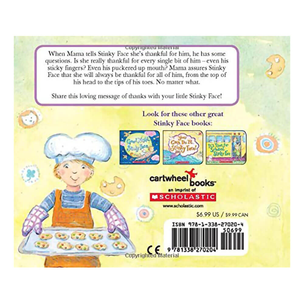 In this new, original Stinky Face story, Mama tells her little one that she's thankful for him. Stinky Face, of course, has a question. With greasy, taco-covered hands and face, he asks, Mama, are you thankful for me even right now? Being thankful is a perennial theme for this young age group. Learning to appreciate yourself, the people around you, and people's unique gifts and individuality is a lesson that is more crucial now than ever, and that is what is at the heart of this touching story. Author Lisa McCourt and illustrator Cyd Moore team up once again to bring us a truly endearing tale of mother and child that's perfect for the Thanksgiving holiday but can live all year round.