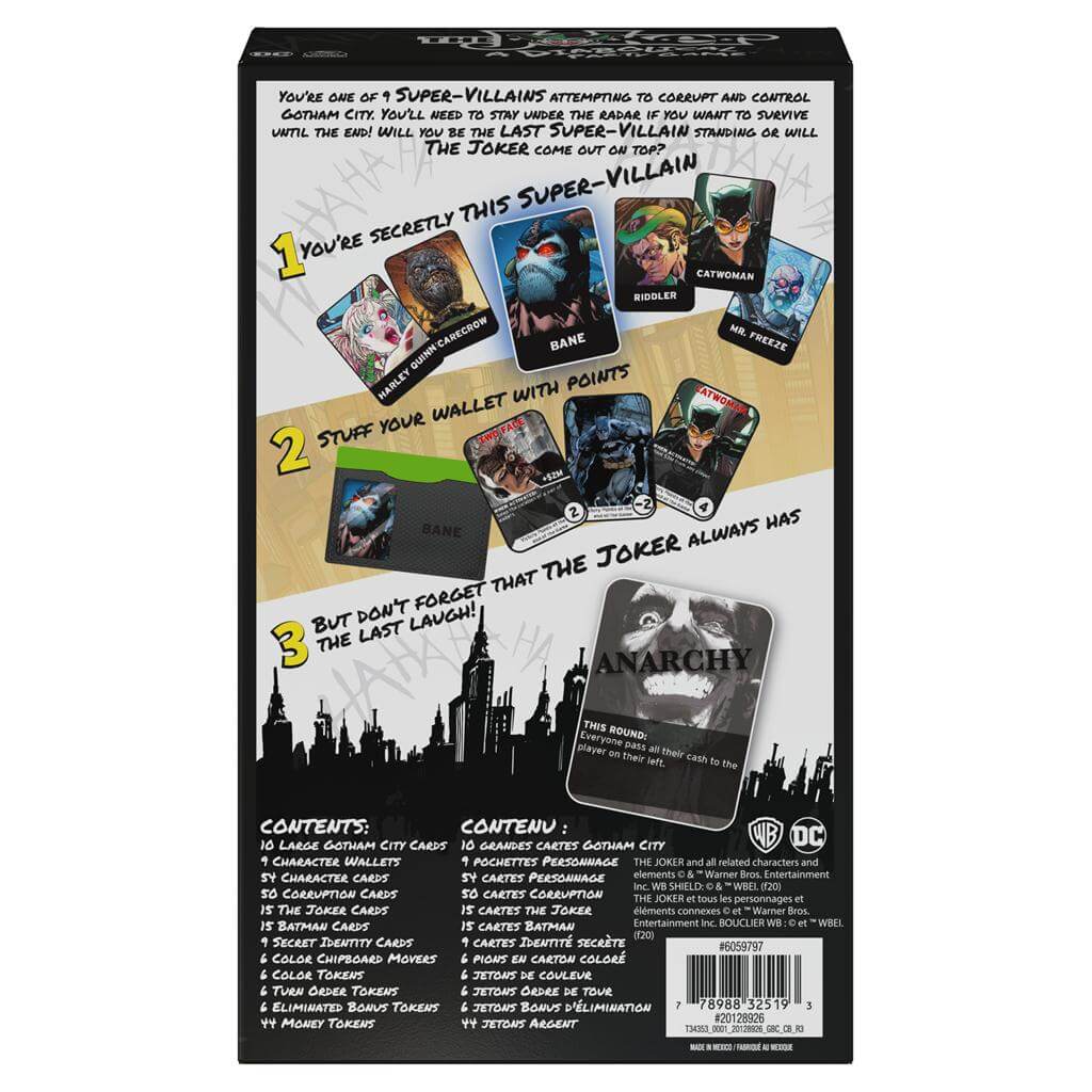 The Joker Diabolical Party Game is the addicting board game that any fan of the Batman universe and its colorful characters will love! You’re one of 9 Super-Villains attempting to corrupt and control Gotham City. You’ll need to stay under the radar if you want to survive until the end! Will you be the last Super-Villain standing or will The Joker come out on top?