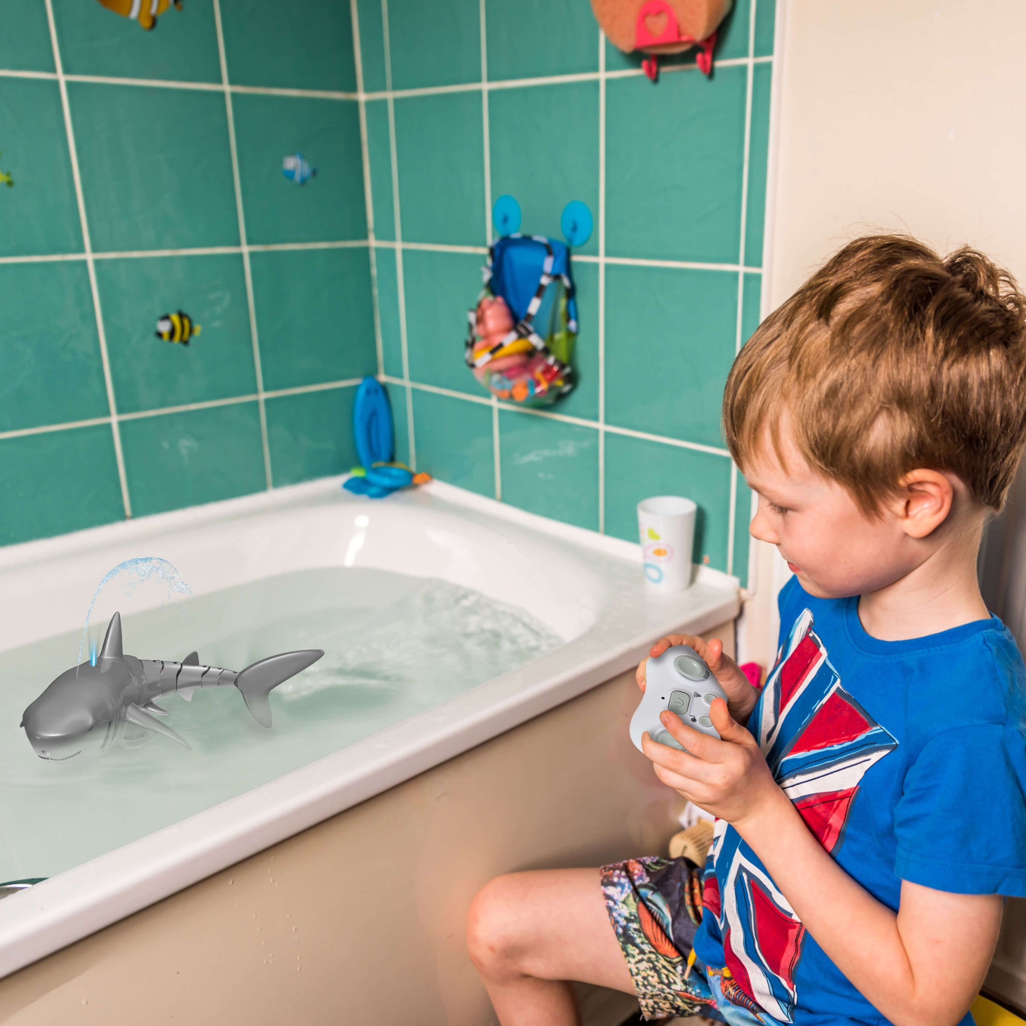 Equipped with a 2.4 GHz remote control, the RC Shark ensures responsive handling, allowing kids to navigate their shark with precision. The addition of LED lights enhances the visual appeal, especially during nighttime play, creating an immersive underwater adventure. The shark also features a water-spray function, adding an extra layer of excitement to the playtime.