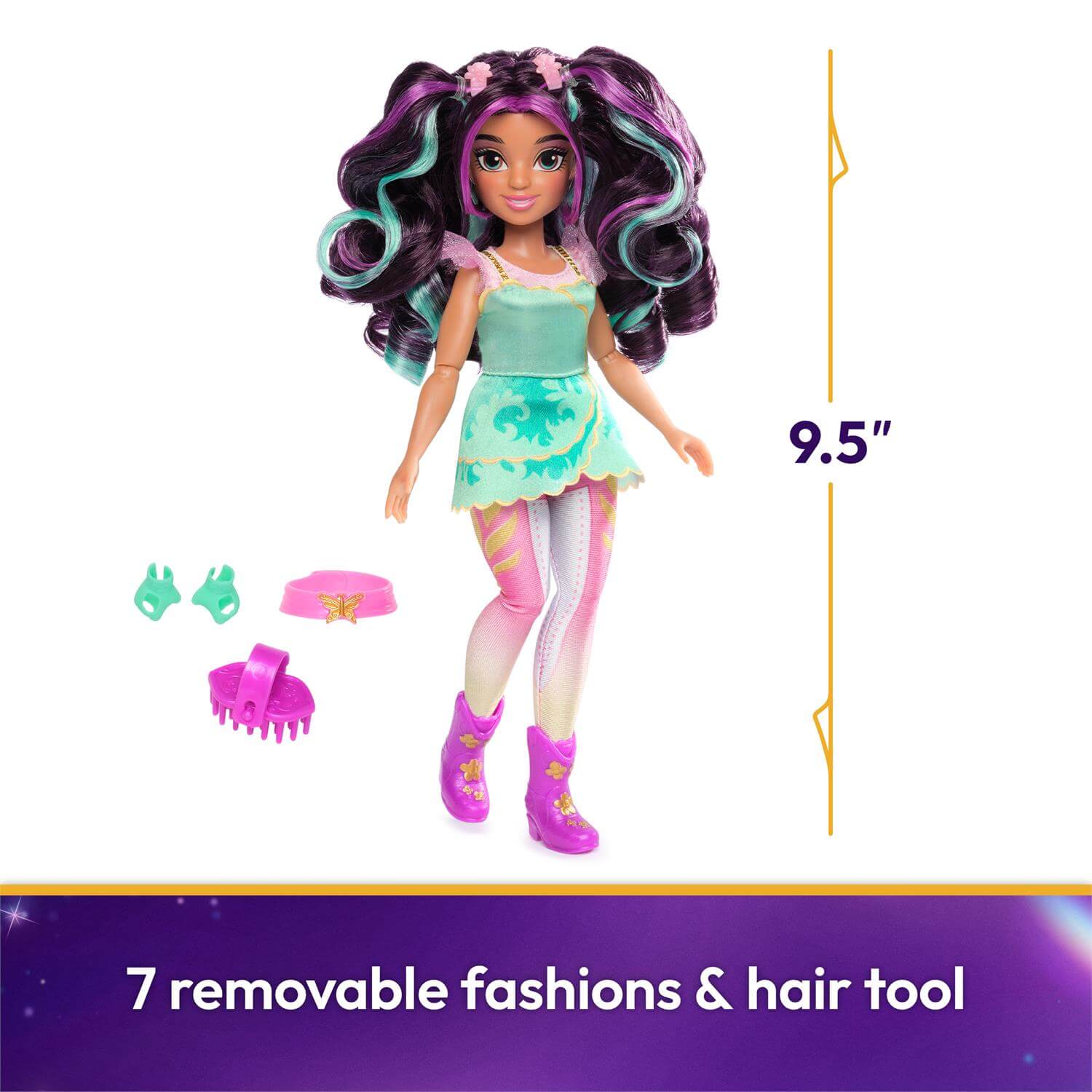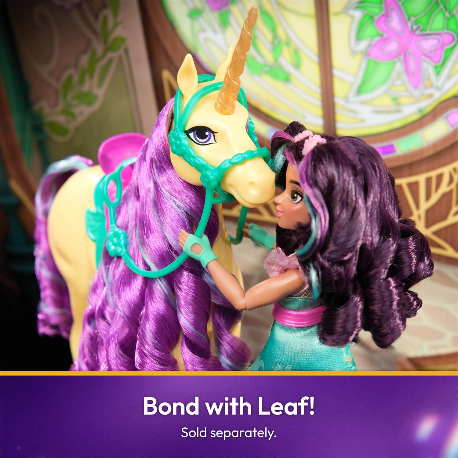 Create enchanting Unicorn Academy adventures at home with Sophia, Ava, and Isabel fashion dolls! Inspired by the NETFLIX animated show and best-selling book series where friendship reins, these 9.5-inch dolls for girls bring the characters to life. Beautifully detailed from head to toe, Ava`s bubbly personality comes through in her highlighted hair (styling accessory included) and her signature unicorn rider outfit: pink and teal petal dress, ombre pants with Plant Magic markings, floral boots and hair clips, gloves, and butterfly belt doll accessories! With 9 points of articulation, pose Ava as you protect Unicorn Island and its magic, and ride into adventure with her unicorn, Leaf (sold separately)! The magical bonds between Unicorn Academy students and their unicorns will spark endless imaginative storytelling. For more ways to experience Unicorn Academy with your favorite characters, look for Sophia and Isabel dolls and their unicorns, Rainbow Light-up Wildstar and River (each sold separately) and expand your world! For kids who enjoy unicorns and horse toys, dolls & accessories, doll house play, collectibles, plush toys and more, Unicorn Academy toys are fun birthday gifts for girls or gifts for any occasion. Bring home the magic of Unicorn Academy with the Ava Doll!