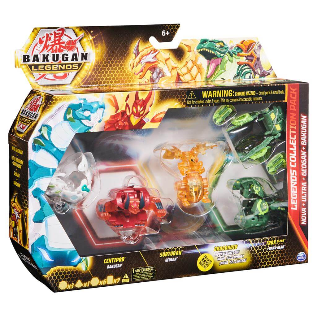Review and buy the Bakugan Legends Centipod, Surturan, Dragonoid & Trox Ultra 4-Figure Collection Pack at Maziply Toys today.