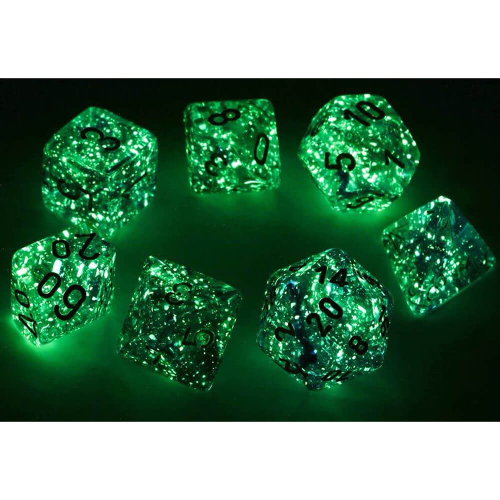 Get your Chessex Nebula Oceanic Luminary Polyhedral 7 Die Set at Maziply Toys today!