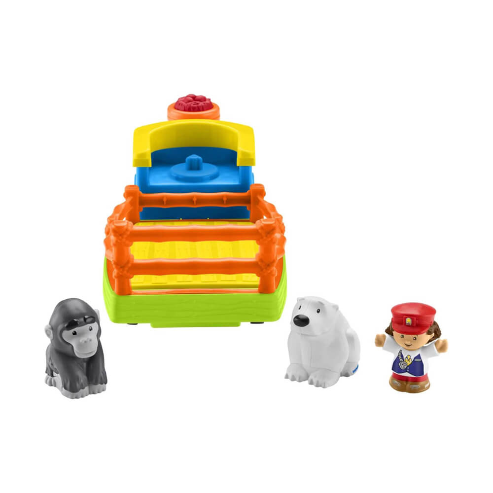 Toddlers will love creating 'wild' adventures with the Little People® Choo-Choo Zoo Train! Press down on the smokestack to hear it whistle, so the Train Conductor can signal the polar bear and gorilla to climb into the back. Then press down on the train bed to hear a sing-along song! Kids can push the train along to hear silly animal sounds to help bring the play to life. All aboard for 'wild' musical fun!