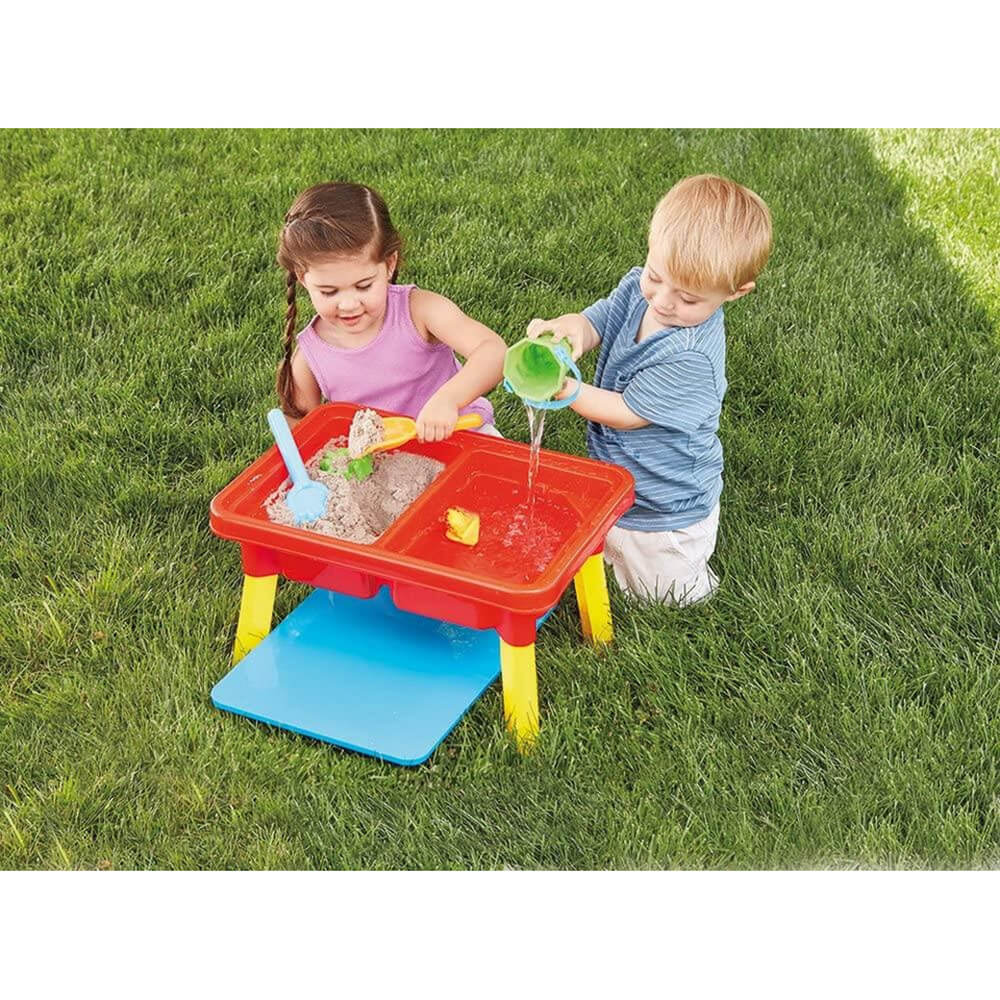 - Versatile Play: In the fall and winter months, use the Sand 'N Splash Table indoors as a playtable! Blue lid encloses the interior wells and offers a suitable playspace for blocks, figures and more!