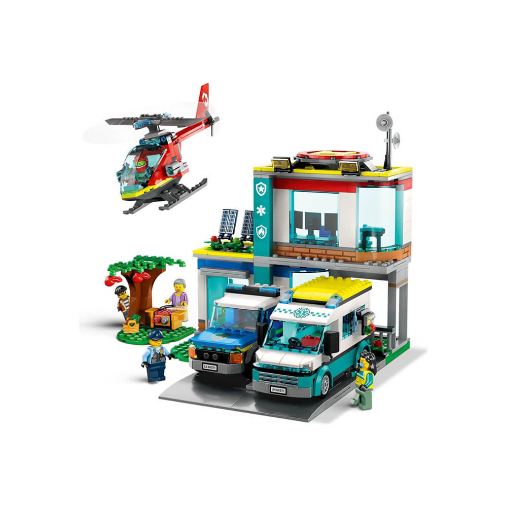 This all-in-one, 2-level LEGO® City Emergency Vehicles HQ building comes with a toy fire helicopter, police SUV and ambulance, plus 5 minifigures.