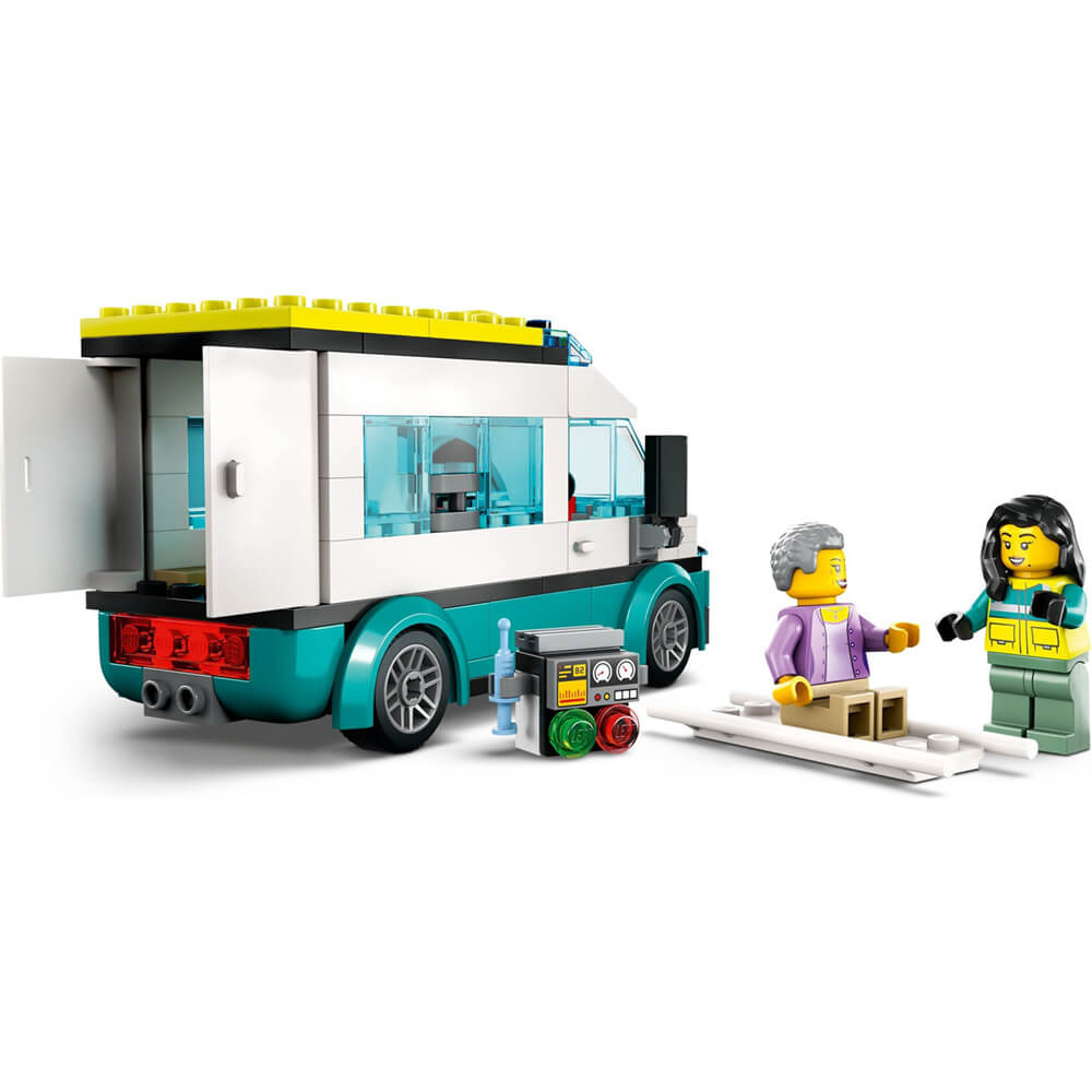 Join the fire, police and ambulance teams at the LEGO® City Emergency Vehicles HQ. Launch the firefighter helicopter from the rooftop helipad. Race to the rescue in the emergency ambulance. Pursue the motorbike and jail the crook in the police SUV. And between emergencies you can enjoy a workout on the treadmill, catch some TV or plan your next mission in the control center. This HQ is awesome!