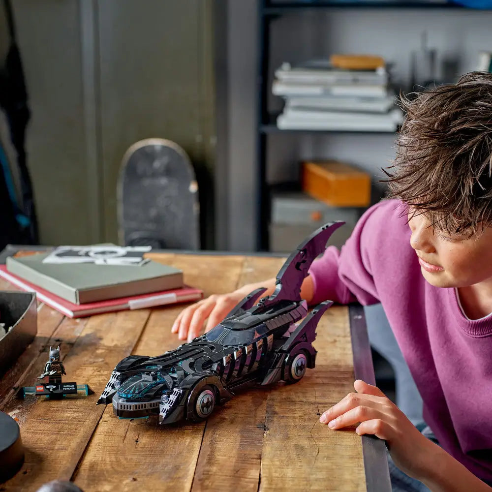 LEGO® DC Batman™: Batman Forever™ Batmobile™ is a build-play-and-display set that authentically recreates the iconic car from the Super Hero movie.