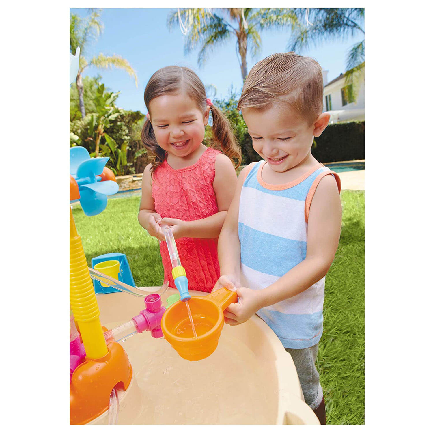 Build, Splash & Play with the Little Tikes Fountain Factory Water Table! This water activity table is great for sensory play and group play. Also includes interchangeable pipes and fittings that bring science and engineering learning to preschool kids in a fun, hands-on way! Plus, the water table comes with an easy-drain plug for easy cleanup.