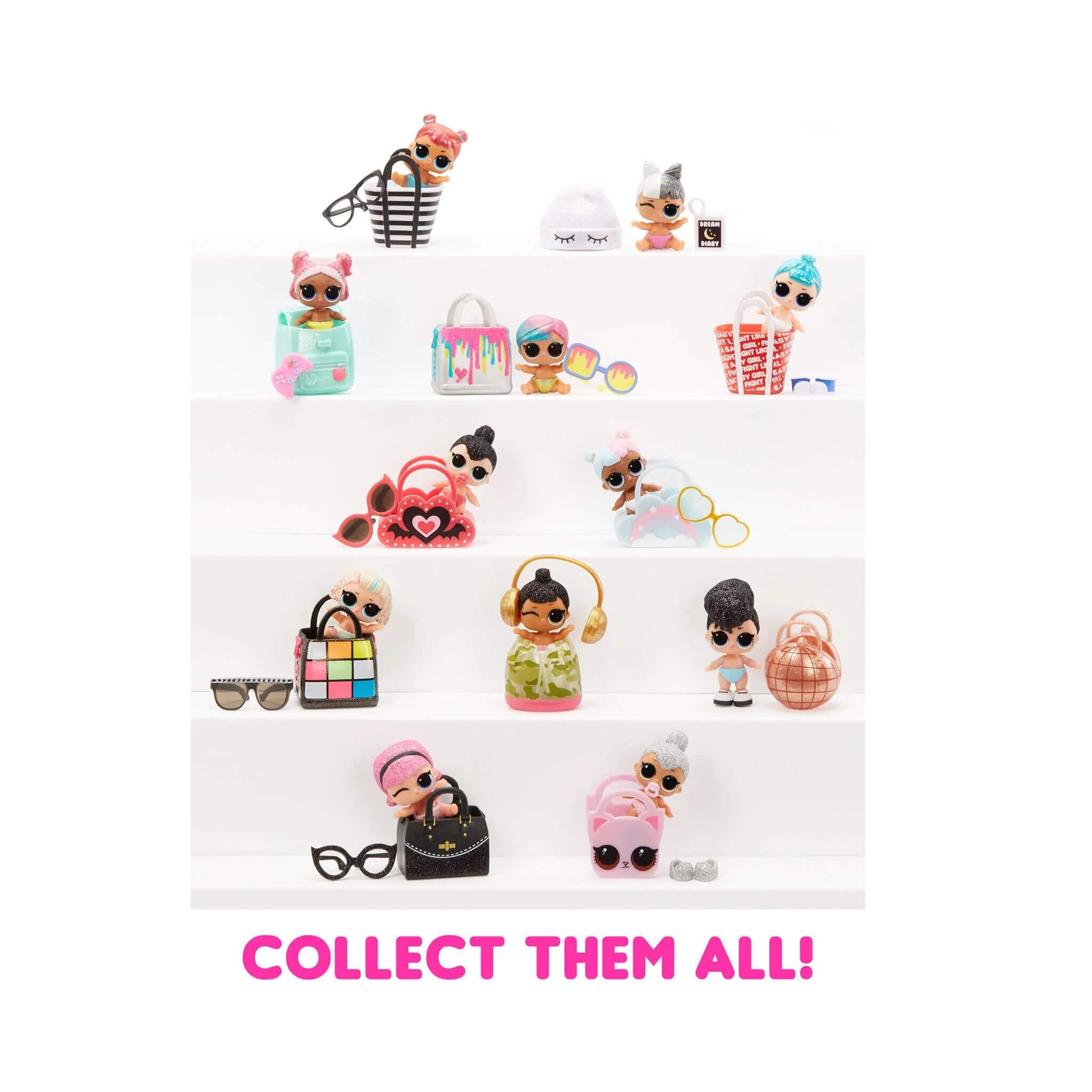 Collect all 12 adorable dolls and their family when you find the big sis and pet of each Lil Sis in the LOL Surprise Glitter Color Change Doll and the LOL Surprise Glitter Color Change Pet collections.