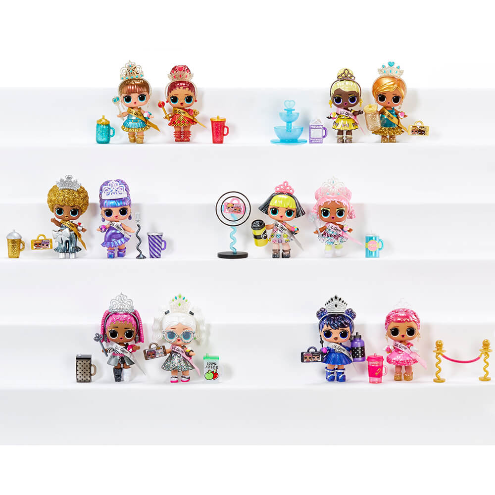 Introducing the LOL Surprise Queens dolls! B.B.s who embrace who they are and always support their BFFs. These Queens love to have fun and strut fierce style on the runway, dance floor and the gala. Queens celebrate the spirit of sisterhood by straightening each other’s crowns and always sitting up straight on their thrones. LOL Surprise Queens dolls come with their own throne and a tiara that you can wear! Unbox 9 Surprises with LOL Surprise Queens dolls, including fashions and majestic accessories! Each doll comes with a secret message, a sash, bottle, accessory, fashion outfit, and shoes. Plus, the handle of the ball detaches to become a Wear & Share Tiara for girls to put in their hair! There are 5 pairs of Queens BFFs in the collection! Selfie Queen, Mystery Queen, Shine On Queen, Double Queen and Study Queen never leave the castle without bringing a selfie of their BFFs with them! Surprises and celebrations are why Queens rule! LOL Surprise Queens dolls have a water surprise. Will your Queens doll color change in cold water or warm water? Or will it cry, spit or tinkle? Feed or bathe your LOL Queens doll to find out. Each ball has a throne for the Queen to sit in and comes with 1 LOL Surprise Queens doll, secret message, bottle, fashion outfit, accessory, shoes, sash, and crown for YOU! Collect all 12 brand new LOL Surprise Queens dolls and get ready to rule the LOL Surprise World! 5 B.B.s (Selfie Queen, Mystery Queen, Shine On Queen, Double Queen and Study Queen) come with a selfie of them + their besties from the Queens collection! LOL Surprise collectible dolls with stylish hair, fun to dress outfits and many detailed accessory pieces make a perfect toy and playset for kids including 4 to 7 year old’s and up girls and boys for imaginative pretend play! As birthday gifts and gifts for any special occasion, dolls provide hours of social play with siblings and friends! From MGA Entertainment, creators of LOL Surprise fashion and collectible dolls, Rainbow High™ fashion dolls, Na Na Na Surprise dolls, Bratz® fashion dolls, MGA's Dream Ella™ fashion dolls, MGA's Glitter Babyz™ baby dolls, Lalaloopsy™, Poopsie Surprise girls dolls, Baby Born® Surprise Baby Dolls and Collectibles, Little Tikes® kids toys and many other favorite brands.