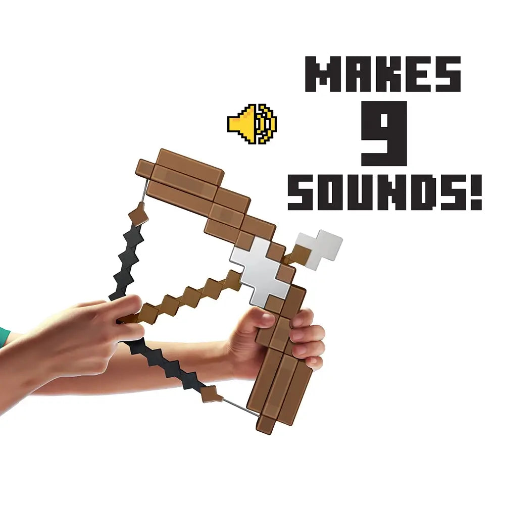 Pull back the bowstring, CREEAAK! and fire… THWUNK! ARRGH! Minecraft comes to life with this player-sized Ultimate Bow and Arrow set that makes game-accurate shooting sounds. This fan-favorite accessory looks just like the weapon that Minecraft gamers craft to fend off attacks by evil mobs! Players will have a blast battling each other offline or using the electronic toy to knock down their Minecraft figures (sold separately). Colors and decorations may vary.