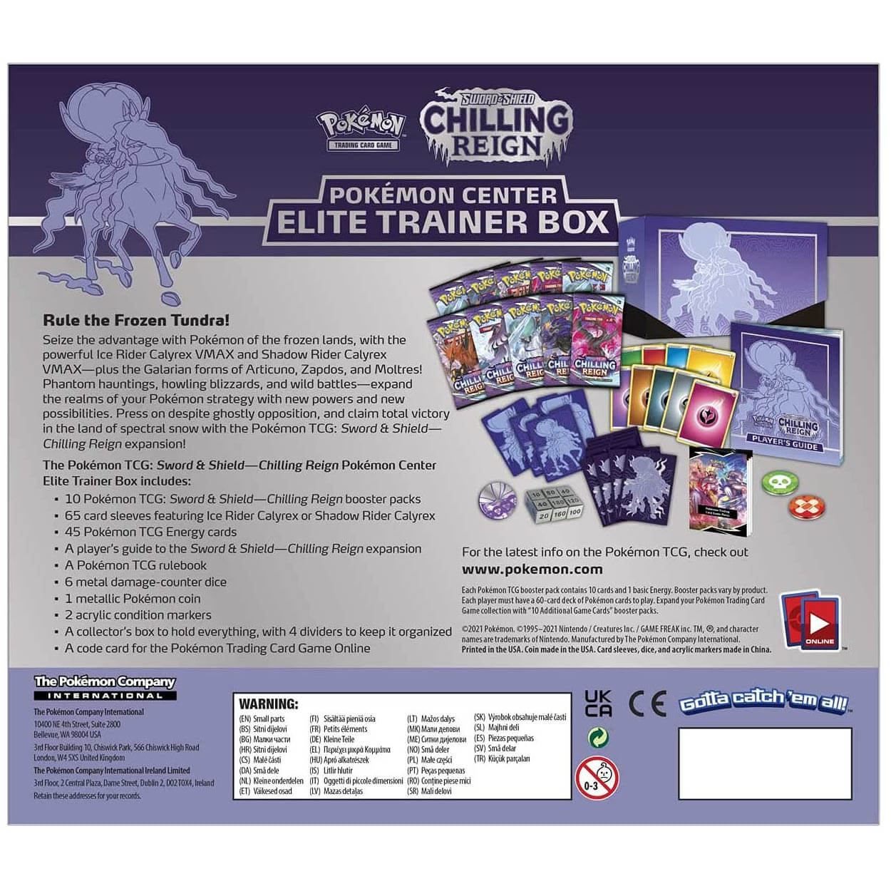 Check out this Pokemon TCG Sword & Shield Chilling Reign Shadow Rider Calyrex Elite Trainer Box! Maziply Toys is the premier authorized retailer of The Pokemon Company products in the United States.