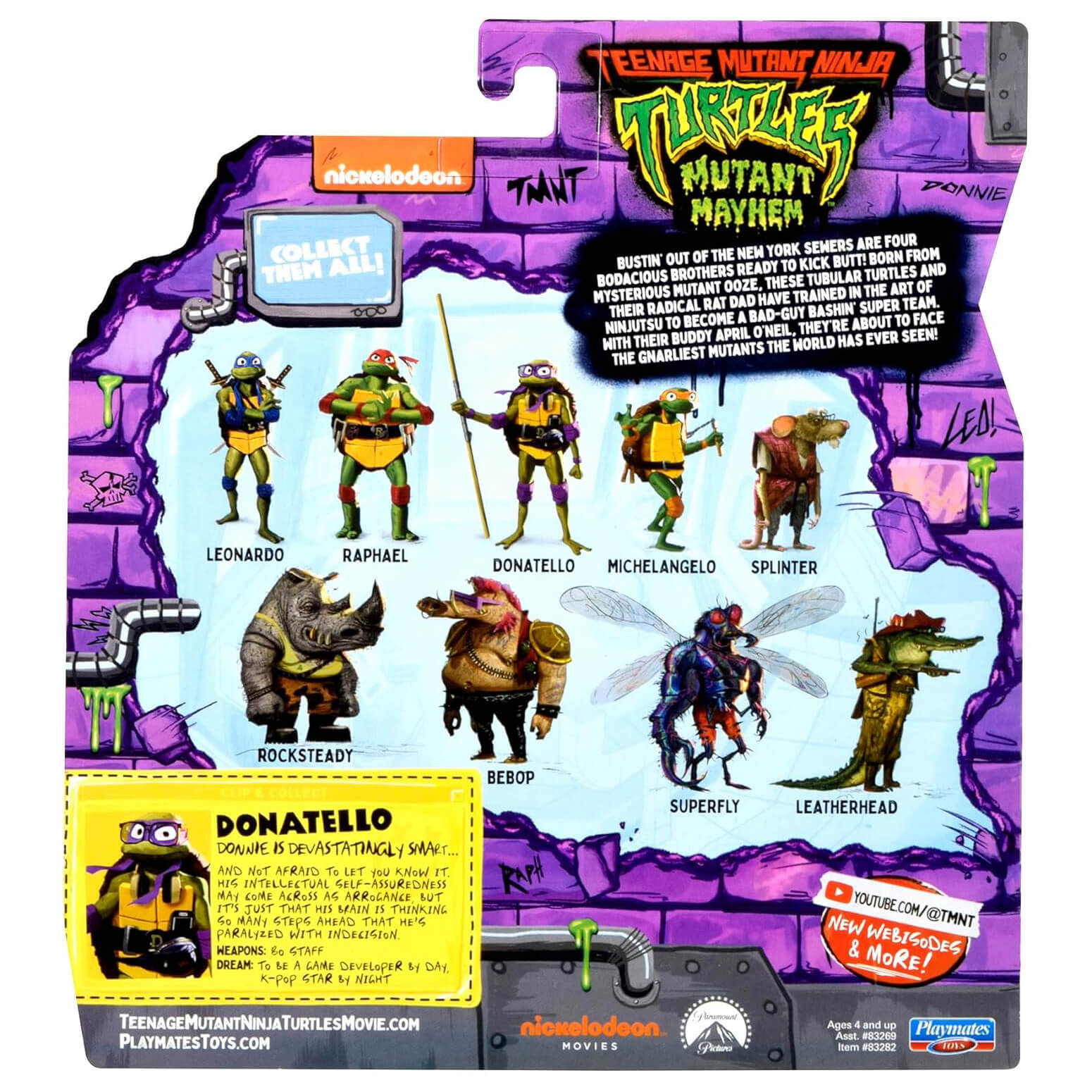 Get ready for the Mutant Mayhem figures and accessories, based on the new CG animated Teenage Mutant Ninja Turtles movie! Donatello is the brains of the Turtles team, making sure they’re always outfitted with the latest machines. He may not be the leader of the group, but that doesn’t mean he can’t be an idol! Now that he’s left the sewer, it’s time for Donatello to fight for his dream—game-developer by day, K-Pop star by night—alongside his brothers, his biggest (and maybe only) fans.