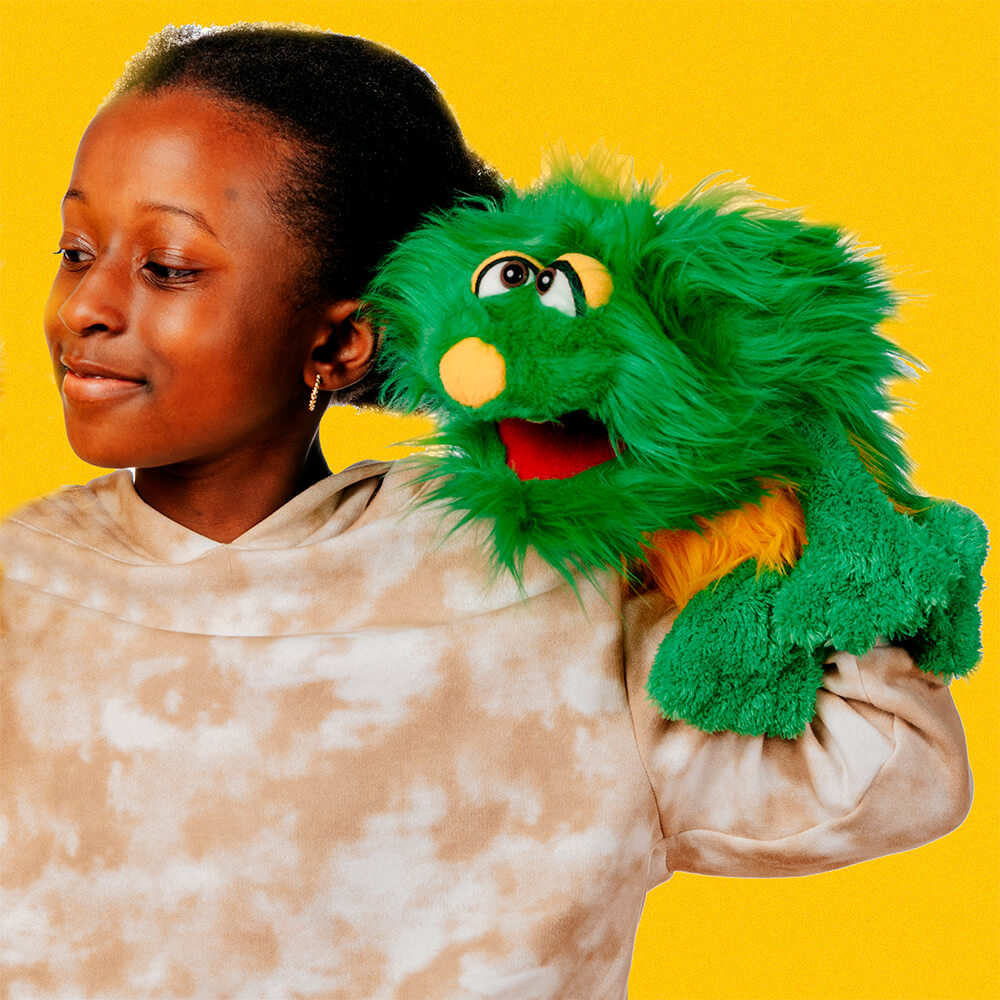 Meet Rocky, the 16-inch green friendly monster puppet from Thin Air Brands' Living Puppets collection—a delightful companion that brings joy and creativity to children's playtime.