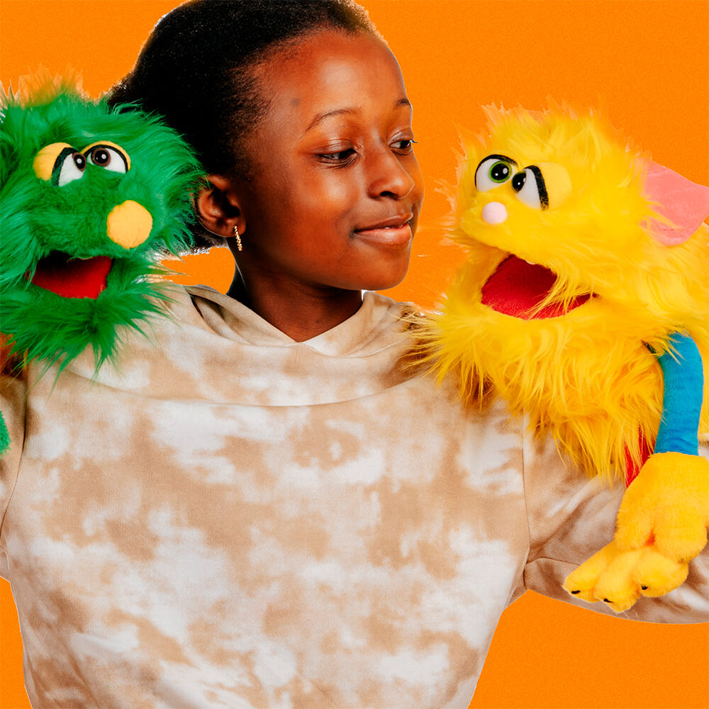 Meet Sassy, the 14-inch yellow friendly monster puppet from Thin Air Brands' Living Puppets collection—a delightful companion that brings joy and creativity to children's playtime.